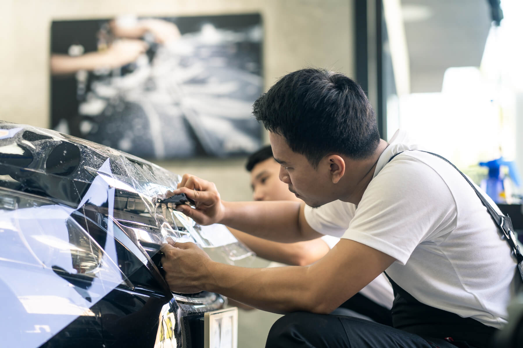 Our advanced ceramic coating services provide an ultra-durable, hydrophobic layer that repels water, dirt, and contaminants — adding a deep gloss and long-lasting protection to your vehicle’s paint, wrap, or PPF.
